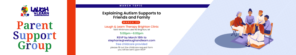 Are you a parent of a child with autism looking for support? We would love to see you at our free parent support group in Brighton! Gain access to essential instructions from qualified professionals and parents in your same shoes on topics sure to be on your mind. This month’s topic is going to be how to explain your child's needs and supports to friends and family. Childcare will be provided so that you can get the most out of the information.